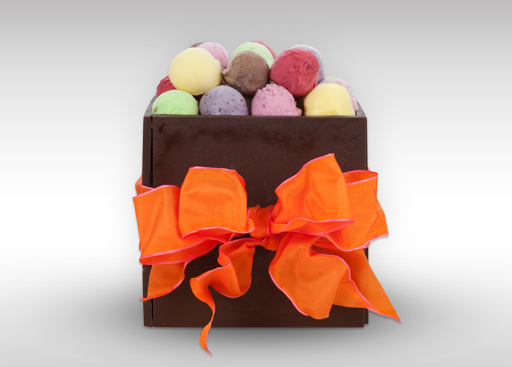 Block of ice cream of your choice, surrounded by walls of Belgian Chocolate, tied with a ribbon of your choice and topped with balls of ice creams and sorbets.